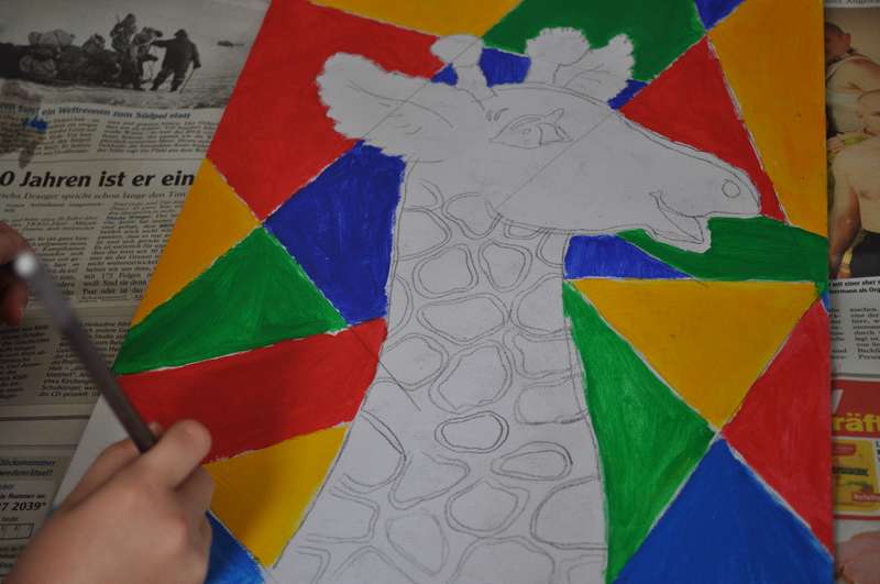 Die Kinder waren fleißig dabei, die Hintergründe für das spätere Kunstwerk zu gestalten.